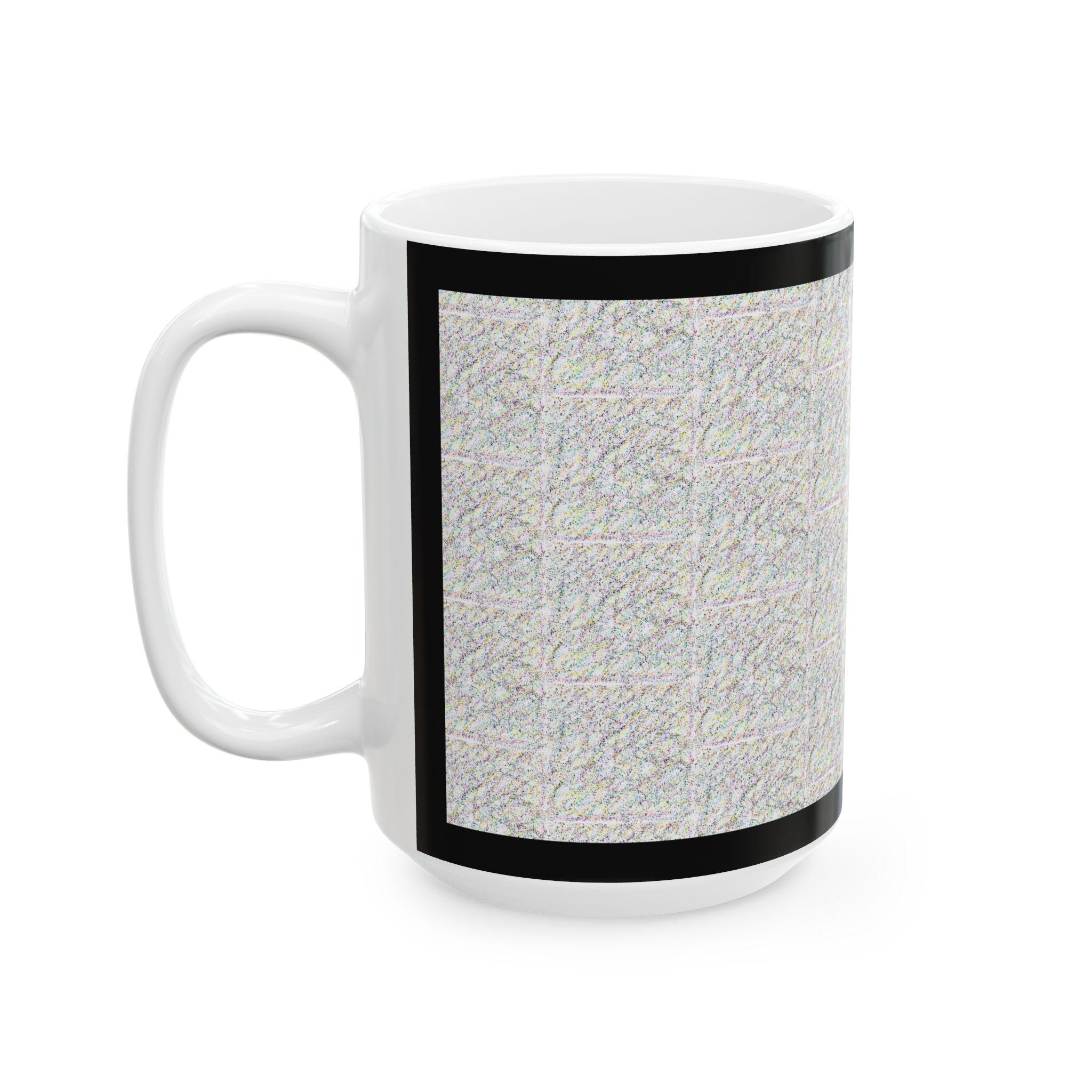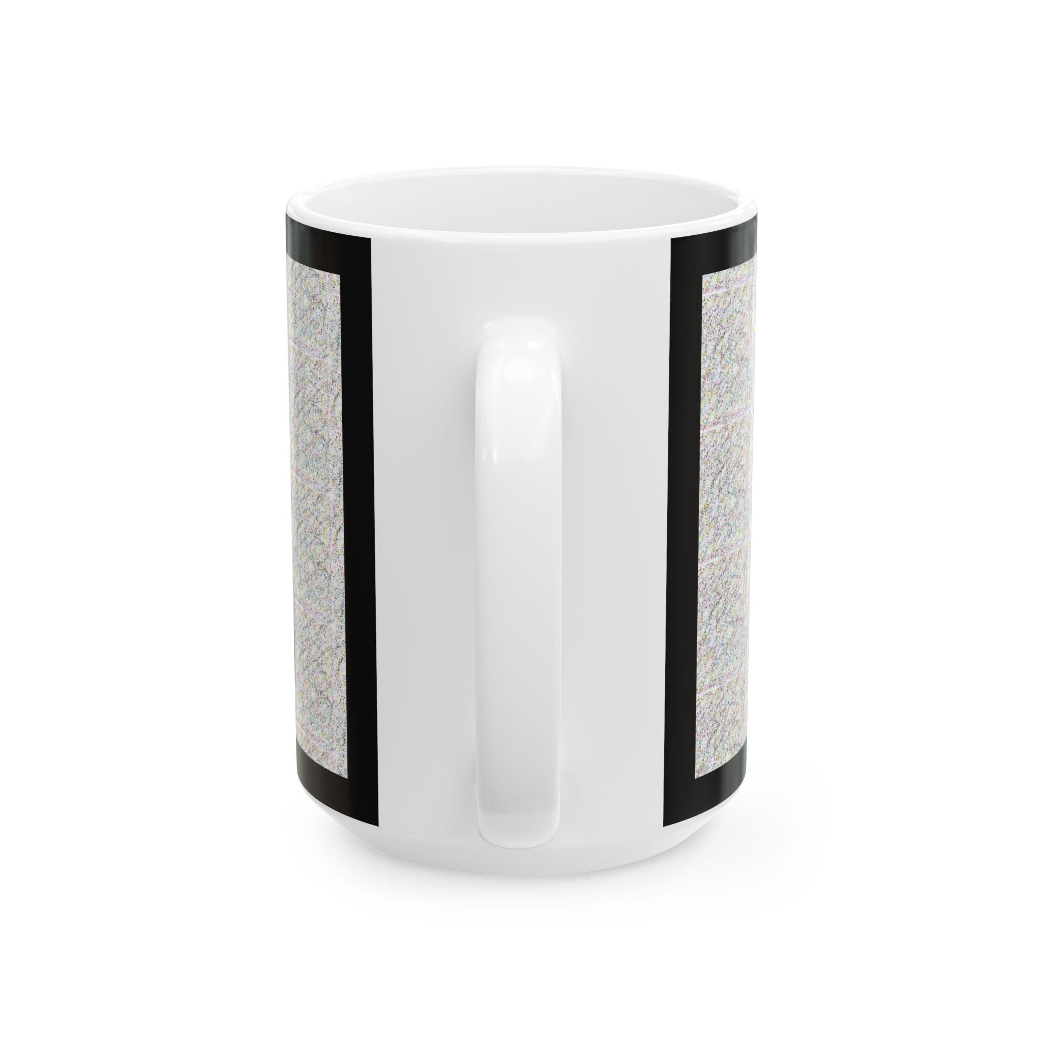 This glossy ceramic mug brings a quiet, textured aesthetic to everyday sipping. The soft stone-like background and restrained black border create a calm, gallery-like look that feels both modern and familiar. Hold it in your hands during slow mornings, beside a stack of notebooks, or on the edge of an evening work session—the weight and glossy finish make small rituals feel considered. Built to stand up to daily use, the design keeps its clarity and contrast while the comfortable C-handle makes it easy to cradle a warm drink.
