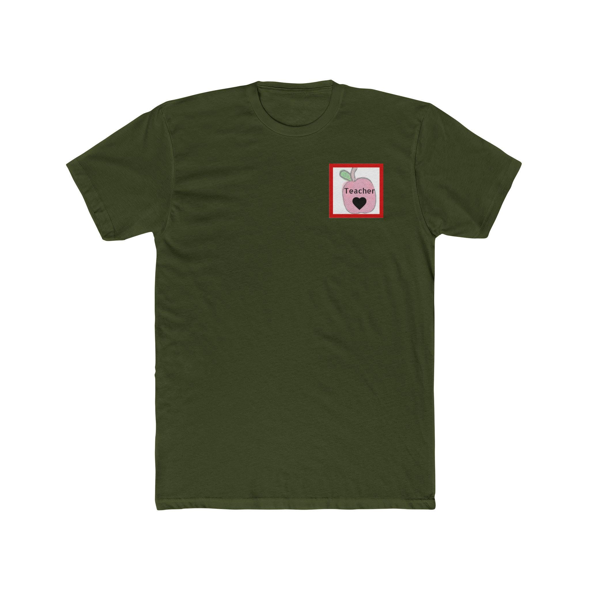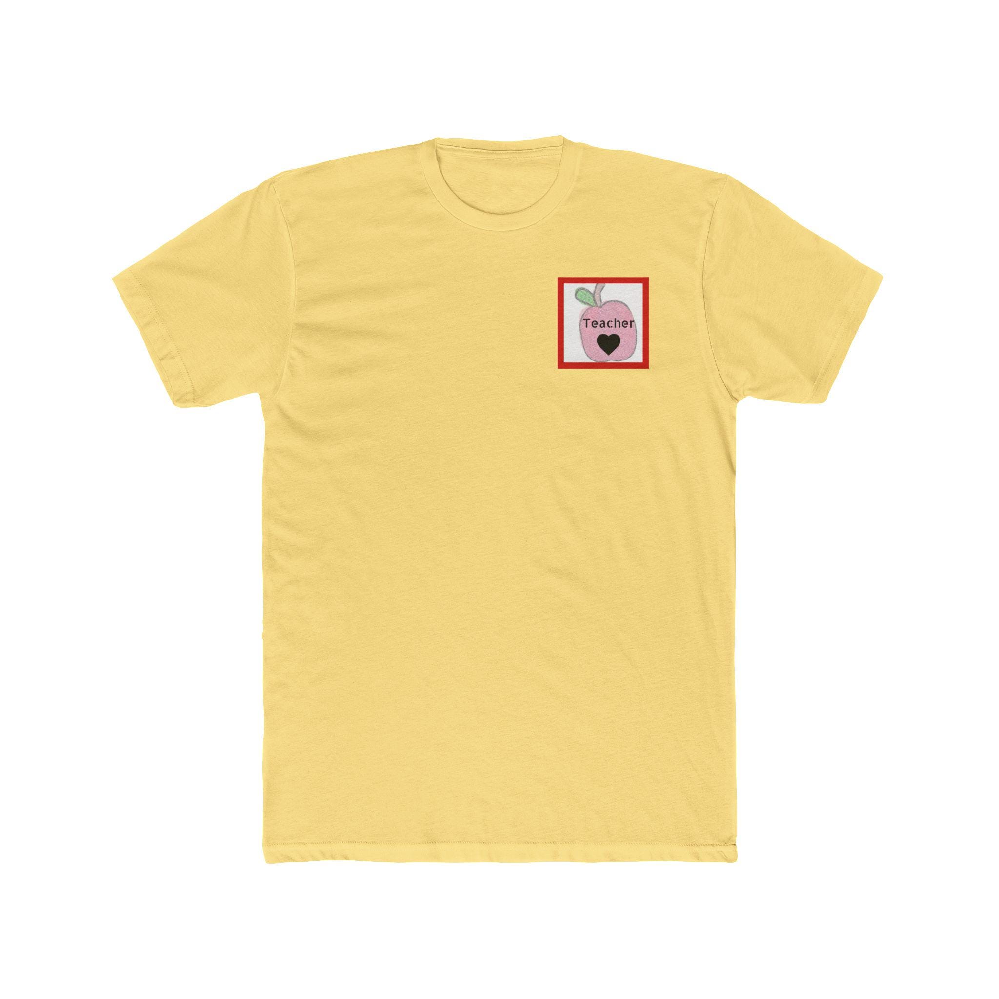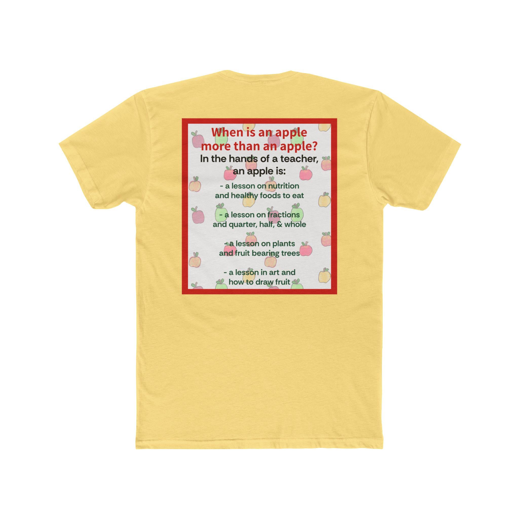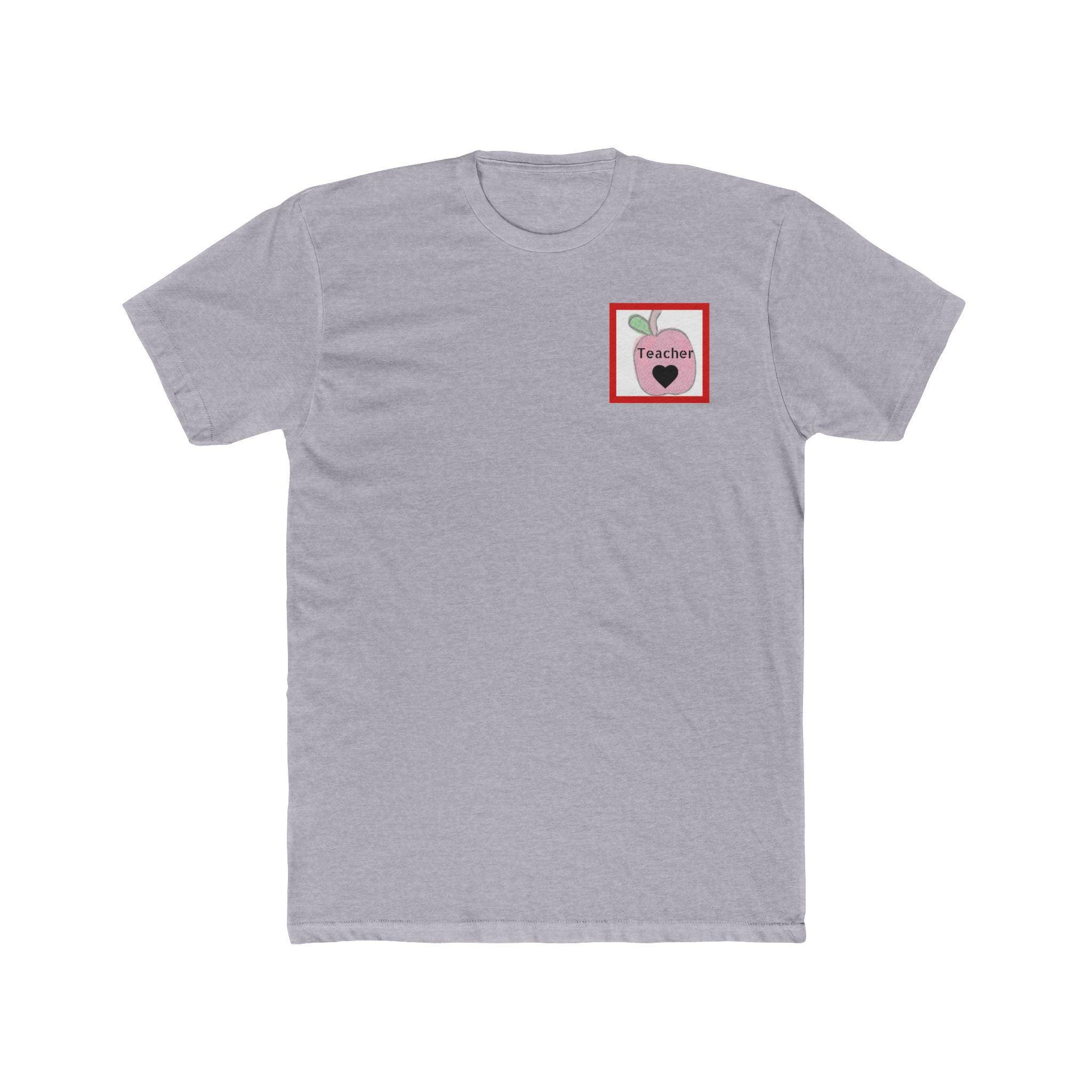 This lightweight cotton crew tee brings a warm, playful nod to teachers and classroom life. Soft-feeling fabric and a classic crew neckline make it easy to wear from morning carpool to after-school meetings. A small, sweet apple graphic sits on the chest while a larger, colorful text-and-apple design covers the back with a thoughtful, lesson-themed message — a little reminder of the impact a teacher has, told through apple imagery and friendly type. The fit is timeless and clean, so the shirt layers well under cardigans, pairs with jeans or chinos, and stays comfortable during long school days. Subtle ribbed collar and shoulder tape keep the tee shaped wash after wash, and the Direct-to-Film sleeve print adds crisp, lasting detail.