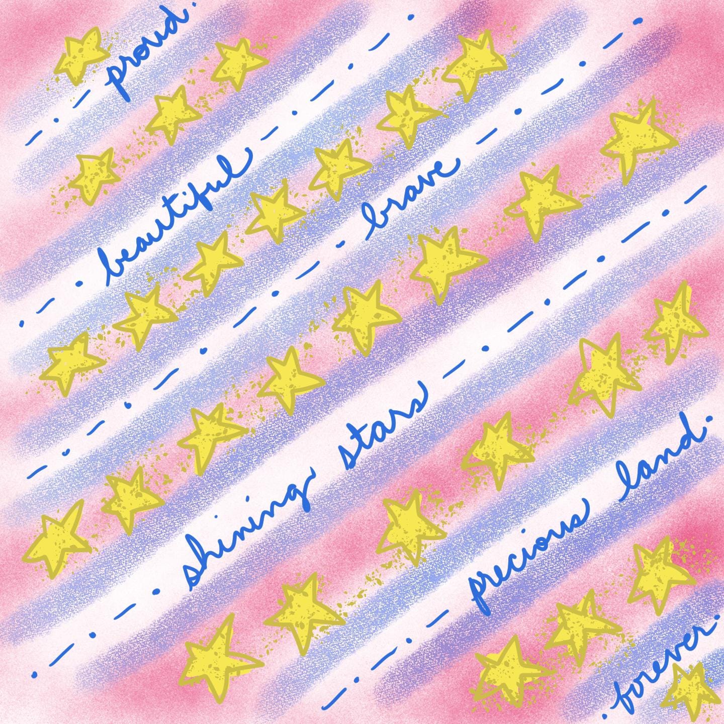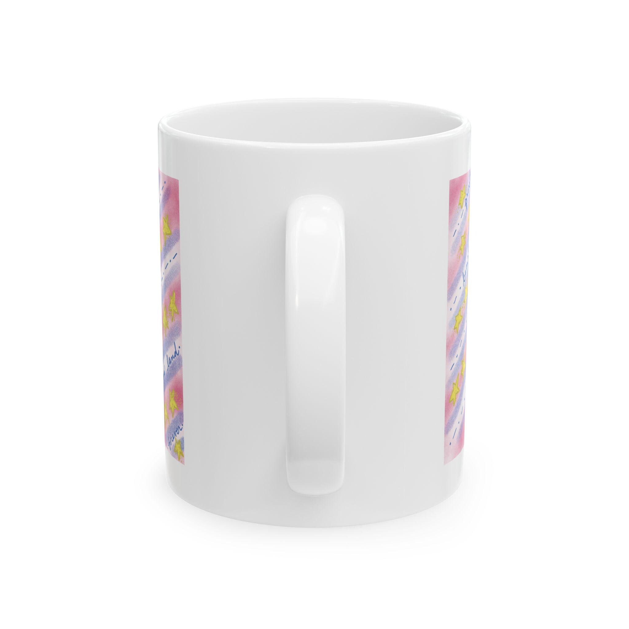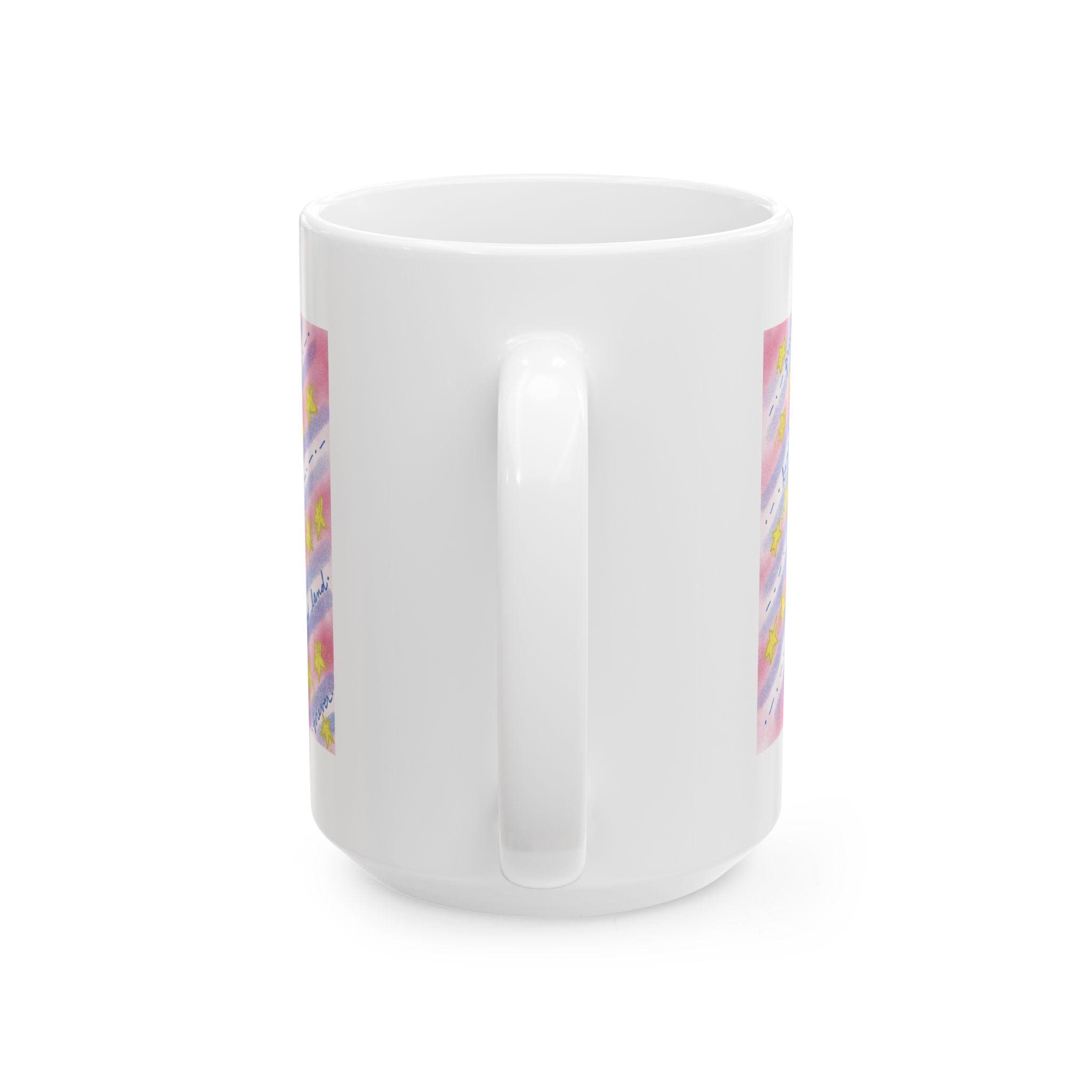 Sip from a little piece of hand-painted warmth. This glossy ceramic mug carries soft watercolor washes of pink and blue, scattered golden stars, and patriotic words expressing country love. The glow of the colors brightens a slow morning and the gentle design makes ordinary coffee or tea feel quietly celebratory. Hold the comfortable C-handle and notice the cheerful shimmer of the print — it reads like a thoughtful note left on the counter, ready to anchor a calm start or steady a late-night work session.